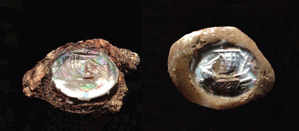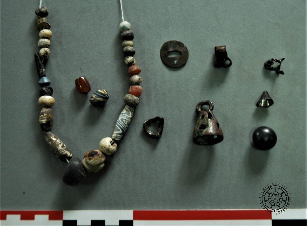 Կմախքների մատերին կային երեք ձվաձև (շեղանկյուն) վահանիկով բրոնզե մատանիներ: Չորրորդ երկաթե մատանու կլոր վահանիկը ընդելուզված էր թիավար առագաստանավի (գալերա) պատկեր կրող մածուկե ակով (նկ. 11):