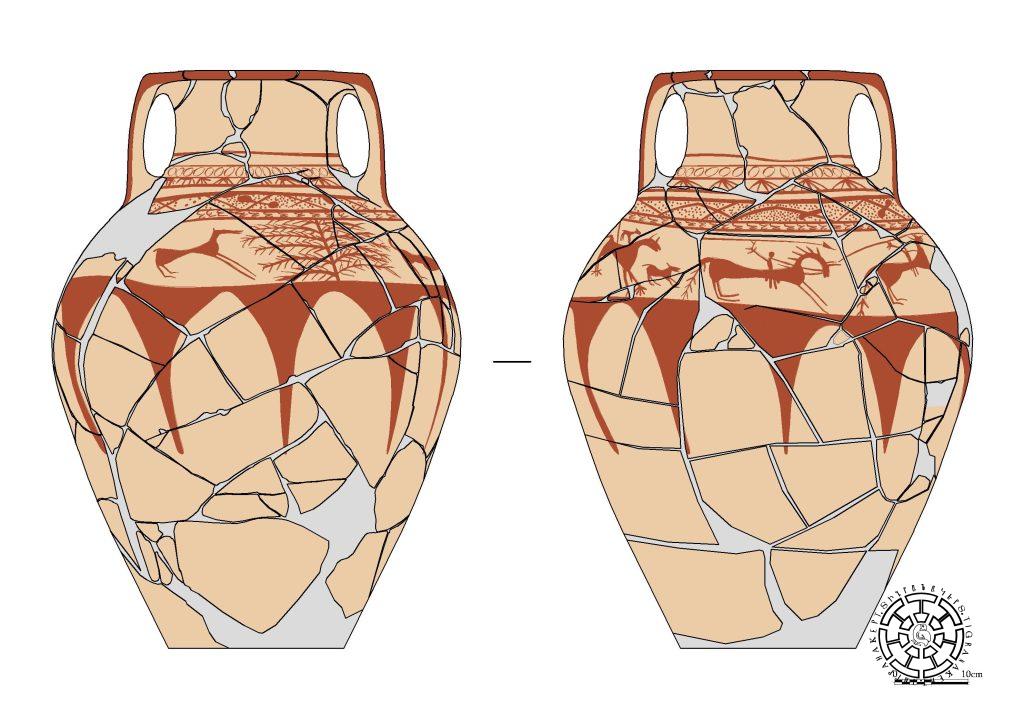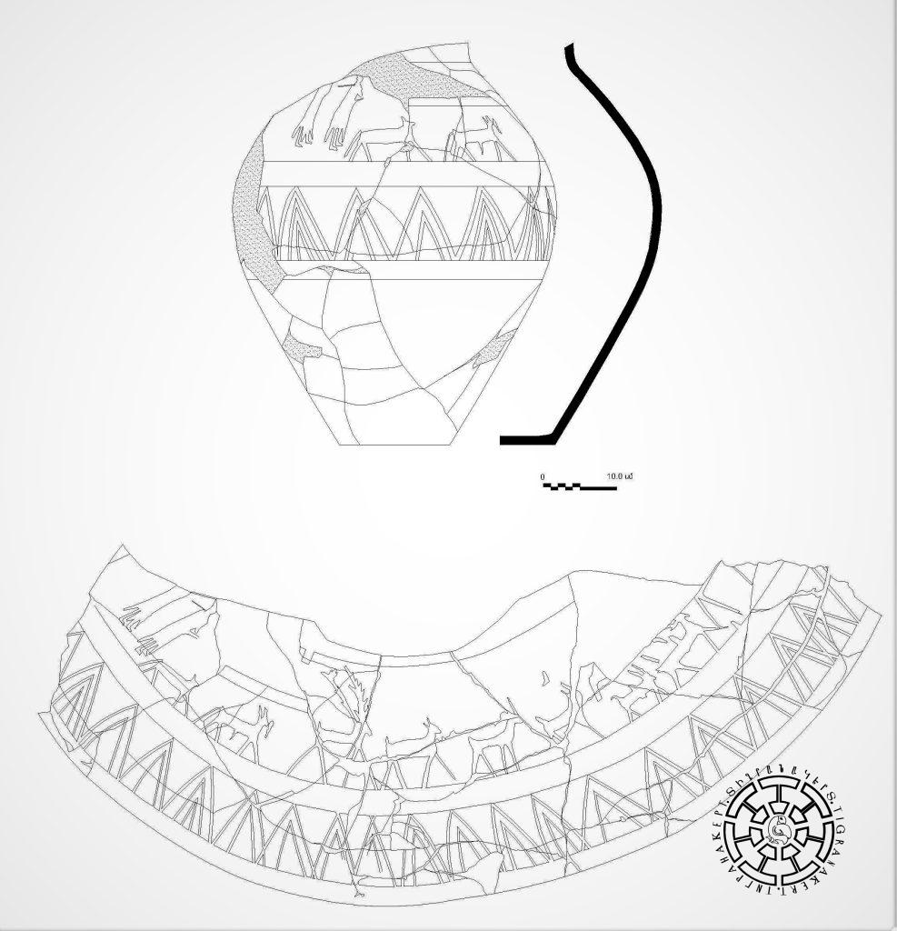 Եղնիկների ներառմամբ ծիսական շքերթի տեսարան է պատկերված Մարտակերտում 2013 թվականին հայտնաբերված, անտիկ թաղումով կարասներից մեկի մակերեսին (նկ. 7): Եղջերուի պատկերով հորինվածքի մի մաս է պահպանվել Մարտակերտի և մի այլ կարասի վրա: Այսպիսով, Տիգրանակերտի և շրջակա տարածքից հայտնաբերվել են թաղման երեք պատկերազարդ անոթ՝ պատրաստված բարակ, վատ թրծված խեցուց: Գուցե գործ ունենք թաղման համար հատուկ անոթներ պատրաստելու երևույթի հետ: