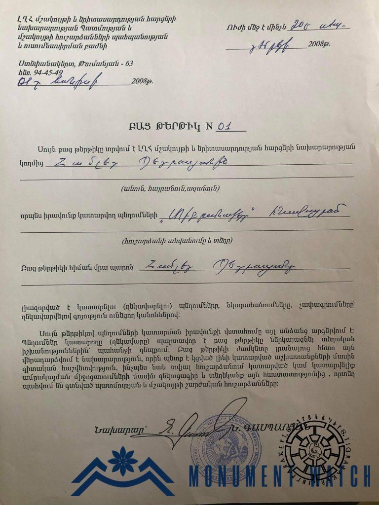 Նաև ուզում ենք հիշեցնել ագրեսիվ պետության կիսագրագետ քարոզիչներին, որ Տիգրանակերտի հնագիտական հետազոտությունն իրականացվել է Արցախի իշխանությունների պաշտոնական հրավերով ու թույլատրությամբ, որ ամեն տարի Արցախի կառավարության կազմում գործող հնագիտական հանձնաժողովը հատուկ թույլատրություն` բաց թերթիկ է տվել արշավախմբի ղեկավարին (տե՛ս այդ թույլատրություններից մի քանիսի լուսանկարները), որ այդ պեղումները ֆիանսավորվել են Արցախի պետական բյուջեից: Տիգրանակերտի հնագիտական թանգարանն էլ ստեղծվել և գործել է Արցախի օրինական իշխանությունների որոշմամբ և ֆինանսավորումով: Տիգրանակերտի հնագիտական հետազոտությունն իրականացվել է լիարժեք իրավական հիմքով, բարձր պրոֆեսիոնալիզմով, հետազոտության արդյունքները պարբերաբար ներկայացվել են միջազգային գիտական հանրույթին: Խոսել գաղտնի ինչ-որ ընթացքի մասին` ուղղակի ծիծաղելի է:
