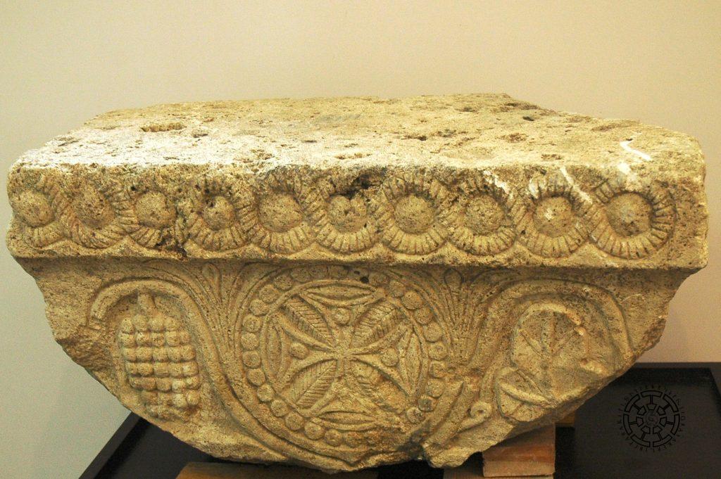 Սրբատաշ խոշոր բլոկներով ու կրաշաղախով իրականացված, եռաստիճան գետնախարսխի վրա դրված եկեղեցին ունեցել է արևմտյան մեկ, հարավային ու հյուսիսային զույգ շքամուտքեր, ատամնազարդ քիվ, փայտածածկ ու կղմինդրապատ տանիք: Շքամուտքերն ունեցել են պատկից զույգ սյուներ, որոնք ավարտվել են մանրամասն հարդարված խոյակներով: Պեղումների ժամանակ հայտնաբերվել են ատամնազարդ քիվերի, պատկից սյուների բազմաթիվ օրինակներ, կղմինդրների հարյուրավոր բեկորներ և երկու խոյակներ: Խոյակներից մեկը ներկայացնում է խաչը լուսատուների, երկրորդը՝ խաչն այգային միջավայրում՝ վաղքրիստոնեության մեջ քաջ հայտնի թեմաները (նկ. 5, 6): Հատկապես ուշագրավ են երկրորդ խոյակի վրայի խաղողի որթերի (ճյուղերը, տերևները, բեխիկները, ողկույզները) բարձրառելյեֆ ու ռեալիստական իրականացումը, ինչը բնորոշ է այս հորինվածքների ամենավաղ օրինակներին: