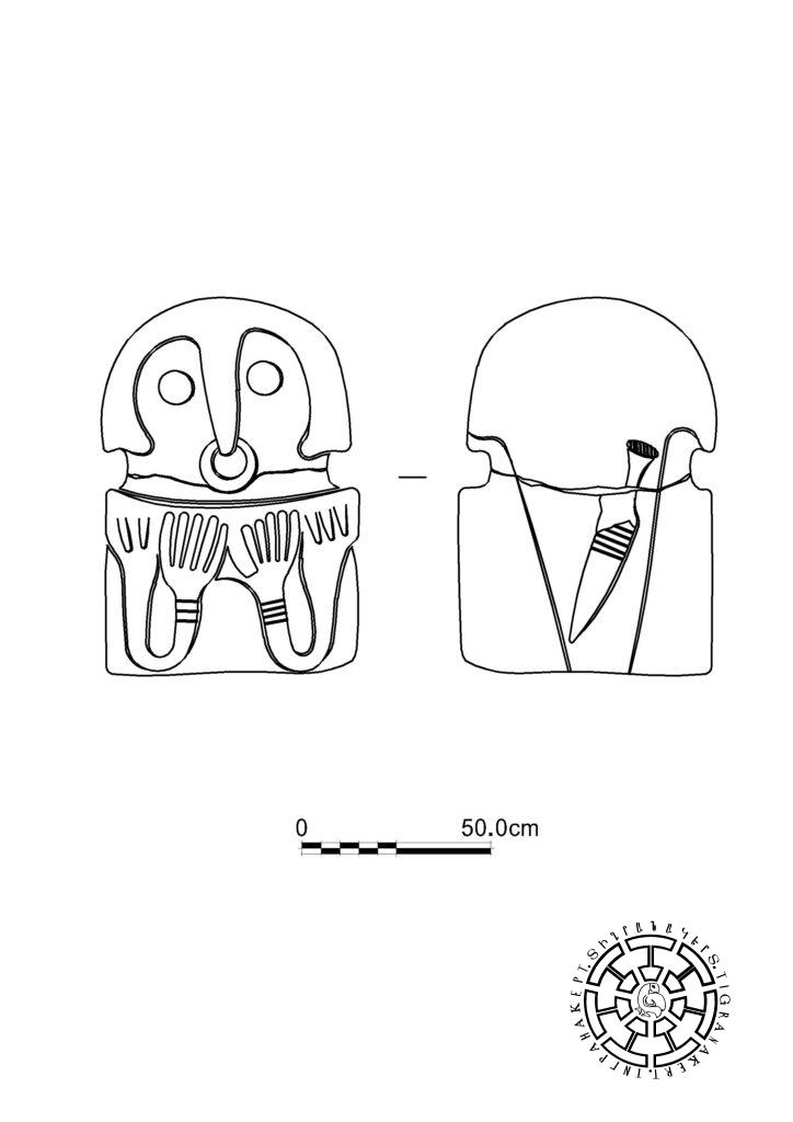 The descriptive examination of the stelae allows us to confirm that the iconography presents us with at least two complexes: a. physique and b. outfit (including armor and decorations). Physically, one can distinguish hands, nose, and, as a rule, eyes. Among the outfits or other decorations depicted on the stelae are a headdress, a dagger, a bracelet, and a ring. The absence of hair, ears, mouth, and sometimes eyes, and the dagger depicted with a slant on the back at the waist, make more than likely the presence of other complexes of clothing and equipment, which were simply not seen and depicted as important (Fig. 4). This suggests that we are dealing with symbolic iconography; rather than depicting the actual appearance, these stelae represent signifier-meaningful components. We can conclude that the stelae depict men, mostly in protective outfits.
