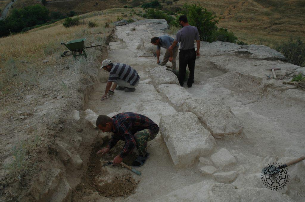 Excavations also uncovered sections of a reinforced wall supporting the citadel’s terrace, as well as an early medieval wall sitting on a “swallow-tail” wall and traces of dwellings with ovens alongside the defense walls. In fact, in the early middle ages, efforts were made to maintain the citadel’s military capabilities, and particularly, from the 11th–12th centuries, its military significance waned. Excavations in the upper part of the citadel indicate its transformation into a densely populated district during the 12th and 13th centuries. At the same time, the foundations of antique monumental buildings can be verified. Moreover, it can already be stated that not only the defense walls but all the antique buildings were carved out of rock.
