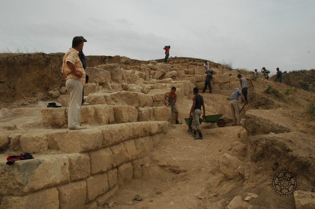 For the clarification of the identity of Tigranakert, starting from the very first steps of exploration, the more than 450-meter rock-carved traces of the defense wall foundations stretching up to the southern edge of the Mount Vankasar slope gained special importance. Their clearly visible stair-like parts were mistakenly considered by Azerbaijani researchers for the stairs leading to the 7th-century church on the top of Vankasar, a circumstance that prevented the discovery of the city.