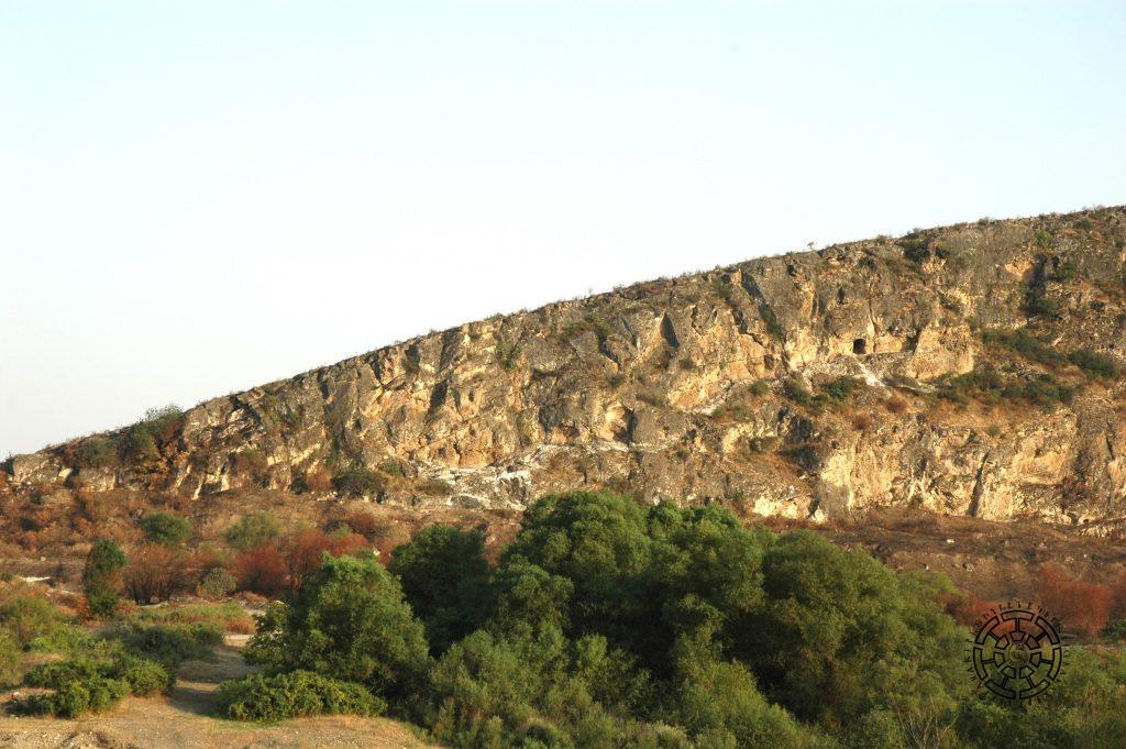 It passes along the lower part of the northern slope of Vankasar, parallel to the river (Fig. 3), then directly at the foot of the cave-cultic complex (Fig. 4). From there, it exits the steppe, turns towards Tigranakert, bordering Vankasar from the south, and passes directly at the foot of the Fortified Quarter, where some sections are carved into the rock again (Fig. 5). Continuing its course, it traverses the Second Antique Quarter, circumvents the Central Quarter, and flows into the steppe. At the foot of the cave-cultic complex, the 500-meter-long canal passes through a rock-carved section, which also has two tunnel parts (Figs. 6, 7).